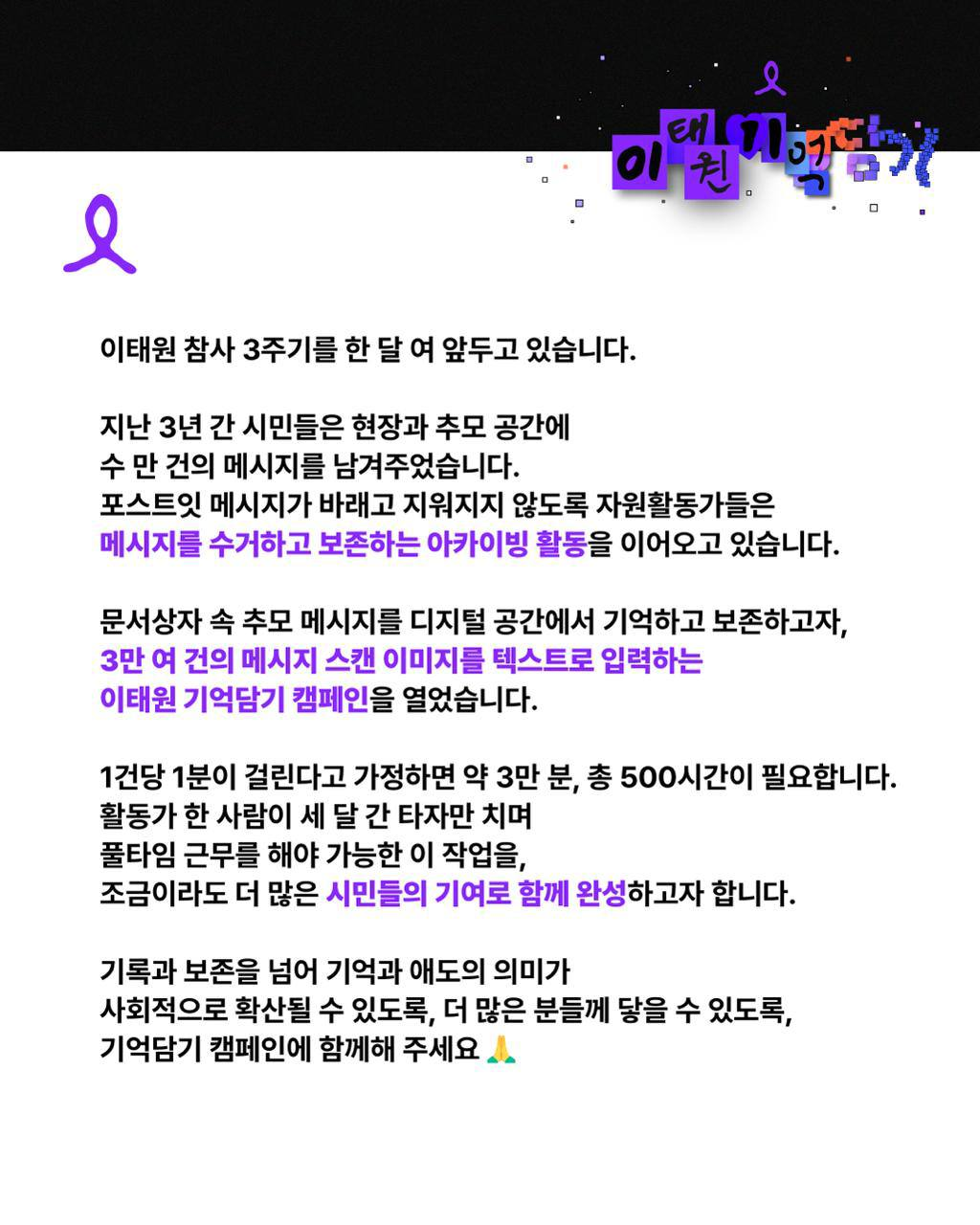 🌟이태원 참사 3주기를 한 달 여 앞두고 있습니다.