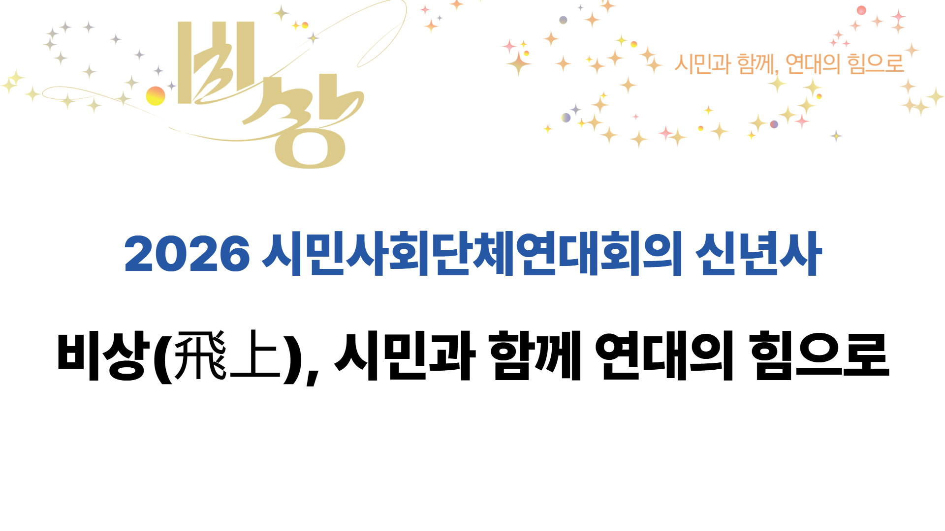 때로는 굽이치고, 때로는 뒤로 물러나는 듯 보이지만, 역사의 물줄기를 결국 올바른 방향으로 돌려놓은 것은 언제나 역동성 있는 시민들의 힘이었습니다. 2026년, 우리 시민사회단체들은 '비상(非常) 상황'에 대한 분노를 '비상(飛上)'하는 희망으로 바꾸겠습니다. ‘붉은 말’의 역동적인 기운은 지난 비상계엄의 어둠을 낱낱이 태워버리고, 우리 사회의 멈춰버린 민주주의를 다시 뛰게 하는 강력한 동력이 될 것입니다. 시민과 함께 연대의 힘으로 저 높은 희망의 하늘을 향해 거침없이 비상(飛上)합시다.