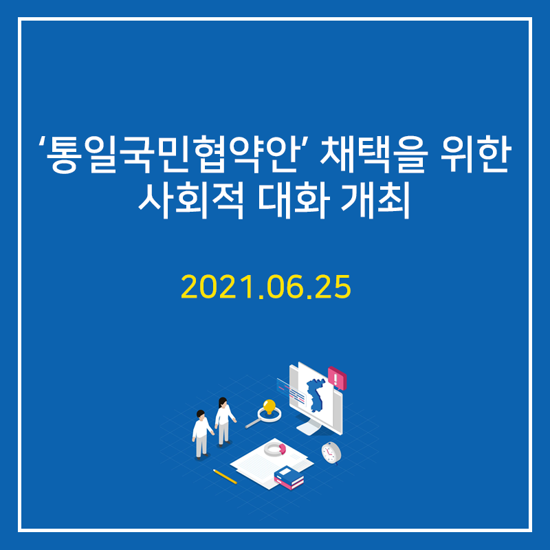 내일(6/26, 토) 오전 10시부터 ‘2021 통일국민협약안 채택을 위한 사회적 대화' 최종 토론이 온라인으로 진행됩니다.