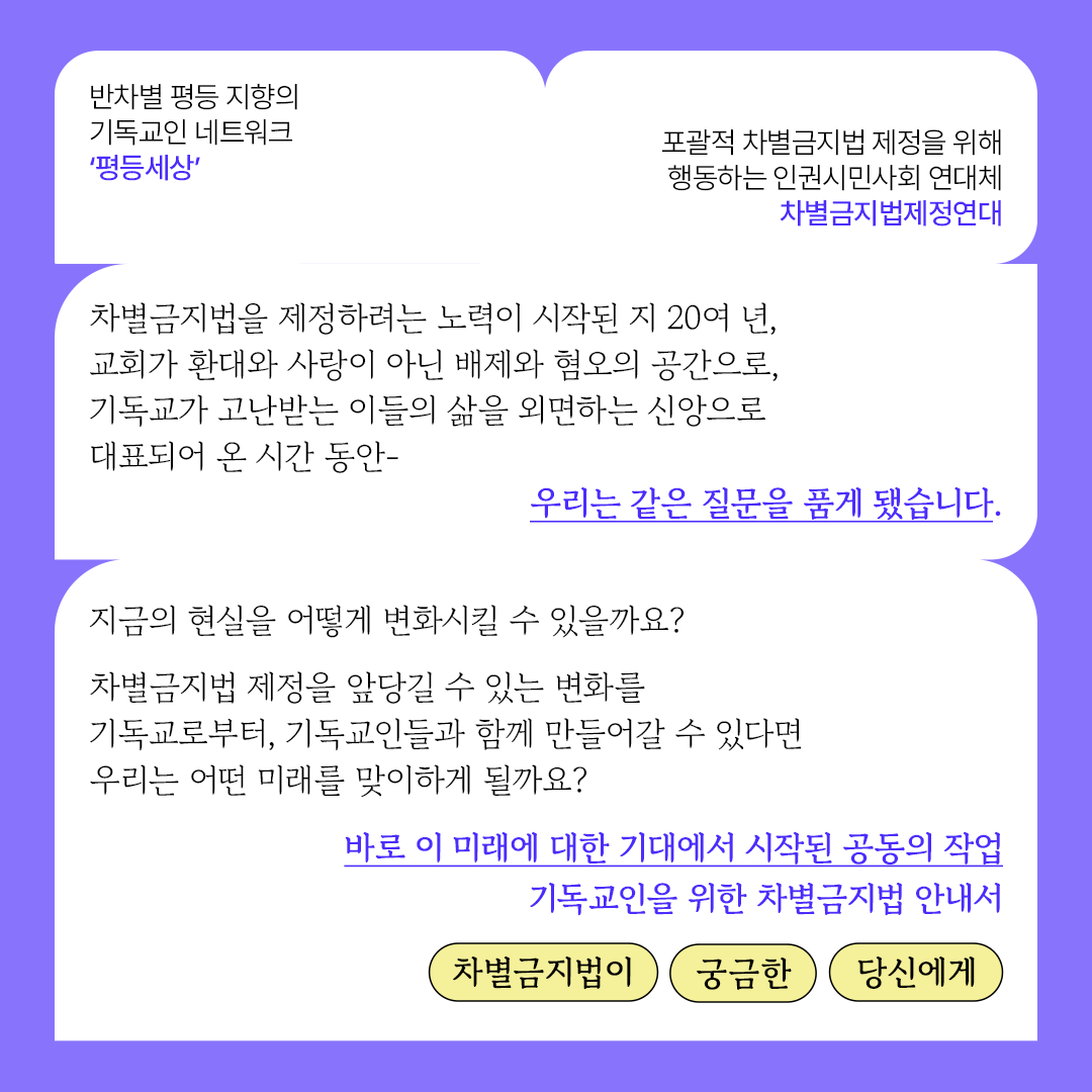 [소셜펀치] 차별과 혐오 없는 평등세상을 바라는 그리스도인 네트워크(평등세상) X 차별금지법제정연대
