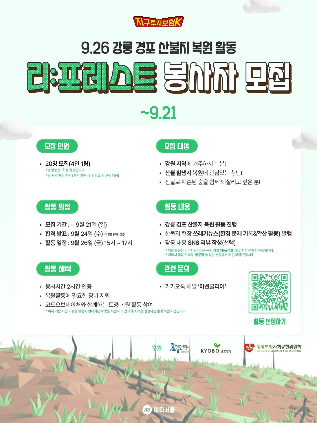 <9.26 강릉 경포 산불지 복원 활동> 리:포레스트 봉사자를 모집합니다!
