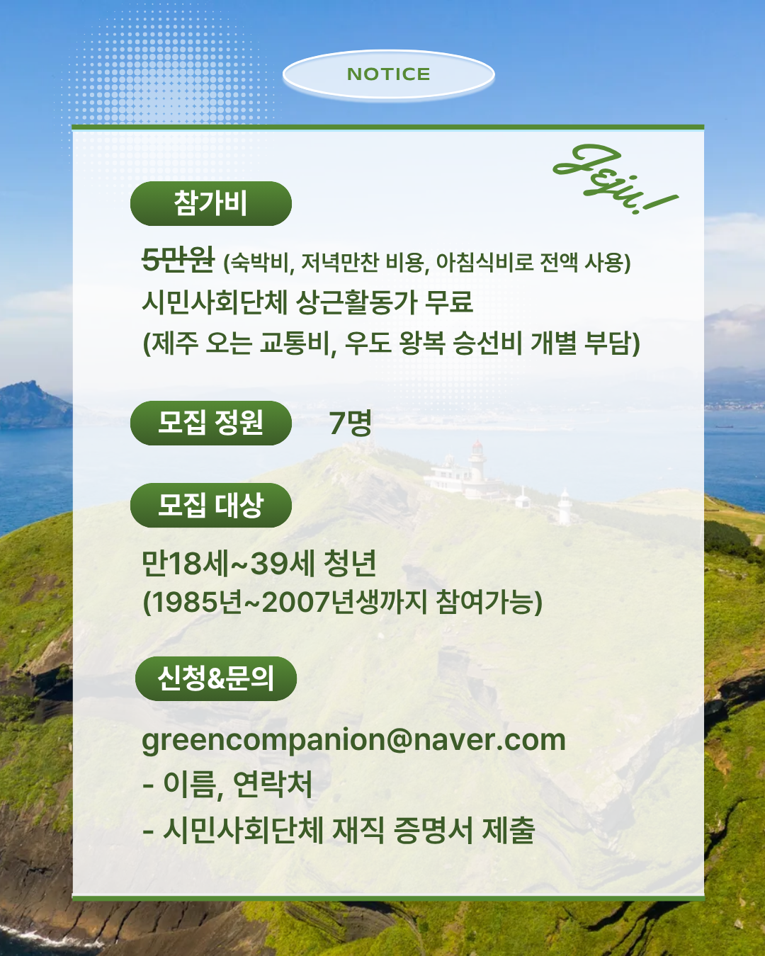 [초록길벗] 청년의 날 맞이 우도 생태 여행 <가을이었다> 참가자 모집 (시민사회단체 상근자 무료)