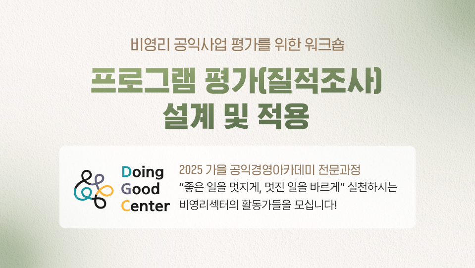 · 대상: 비영리 공익사업(프로그램) 평가담당자, 실무책임자, 질적연구 조사 설계 관심자