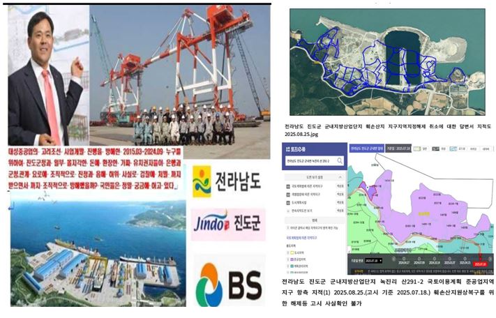 2. 진도군수의 2차 표적 학살극 디에스중공업이 전문 직종인 해상 크레인 수출 전진 기지 개발을 위해 2015.03 135억원을 투자하여 매입한 “진도 고려조선 군내지방산업단지부지 약 610,000m2중 진도군수가 경락을 받자 마자 610,000m2 면적중 310,8 10m2 면적을 산지전용허가 취소 및 훼손산지원상복구를 하라고 통지하고 2015.05 산지훼손이행보증금 11억원을 인출한뒤 그렇게 애걸 복걸 당장에 잡아 죽일 듯 달달달 볶음으로 몰아 부쳐 놓고 2015.05-2025.12까지 11억원의 훼손산지이행복구 비용을 보관만 하고 진도군 세외수입으로 이자 장사만 하는 사실에 대하여
