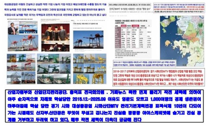 박근혜 정부에서 - 문재인 정부 까지 풀리지 않는 미스터리 해상크레인 수출 효자기업 대성중공업의 1,000명 생존권을 학살한 권력에 정점에 누가 있기에 2015-2025 10년간 국가 특급 기밀급으로 꽁꽁꽁 아이스 캐비넛에 숨기고 은폐하는 대성중공업 시화산단MTV 관리기본계획변경 표적삭제의 진실을 시민사회가 반드시 밝혀 낸다
