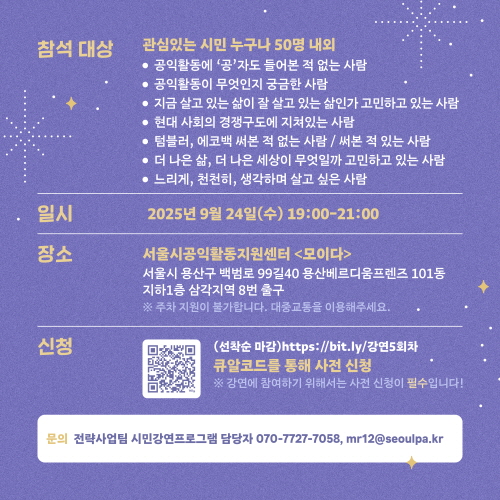 - 참석 대상 : 관심있는 시민 누구나 50명 내외