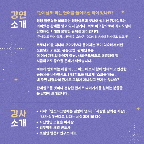 (*관계실조 단어 출처: 사단법인 오늘은 '청년 관계실조 보고서')