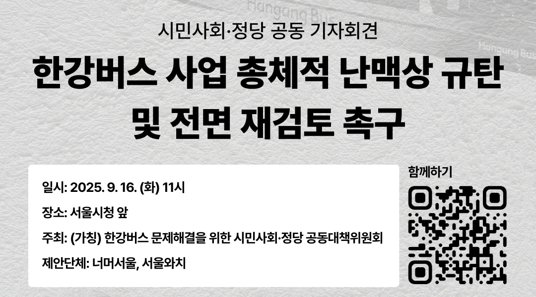 ▶ [서울환경연합] 한강버스 사업 총체적 난맥상 규탄 및 전면 재검토 촉구 기자회견 (9/16)
