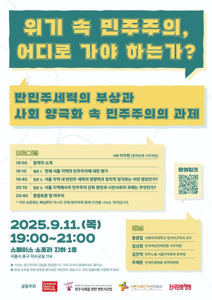 ▶ [민주화운동기념사업회] 2025년 세계 민주주의의 날 기념 1+7민주주의 토크콘서트 (9/13)