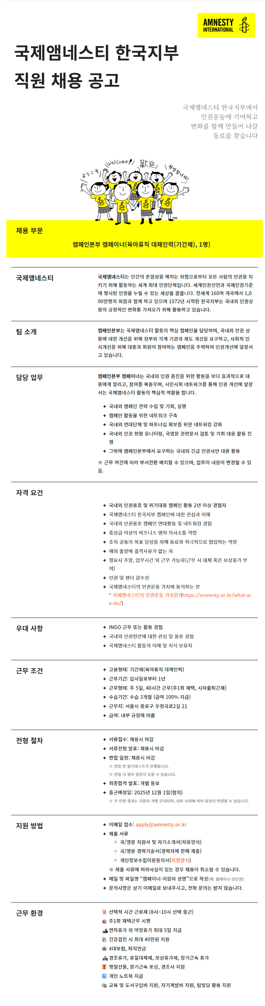 (~채용시까지) [(사)국제앰네스티한국지부] 캠페이너 채용
