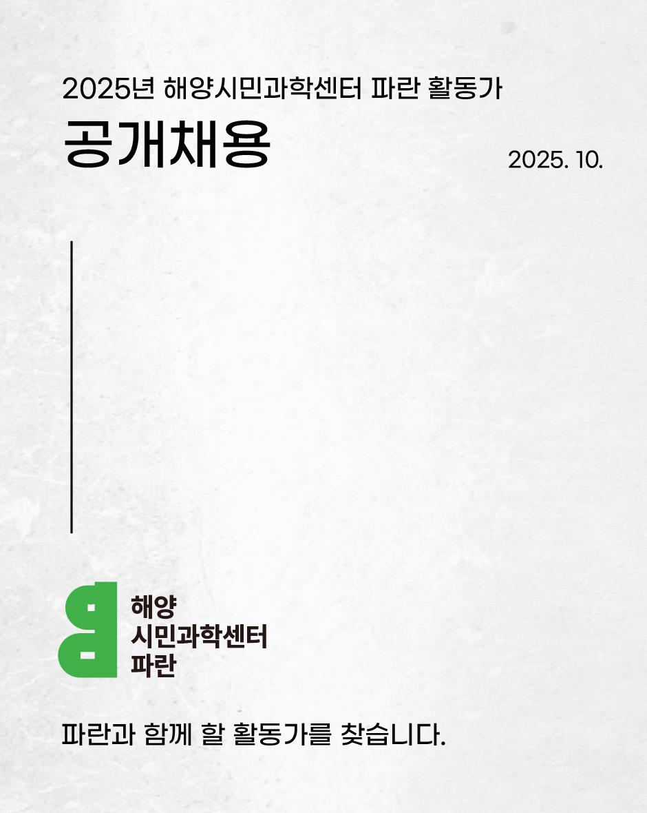 - 대면 면접: 2025년 11월 19일(수) 오후 2시~ @해양시민과학센터 파란 사무실/ 교통비를 지급합니다.