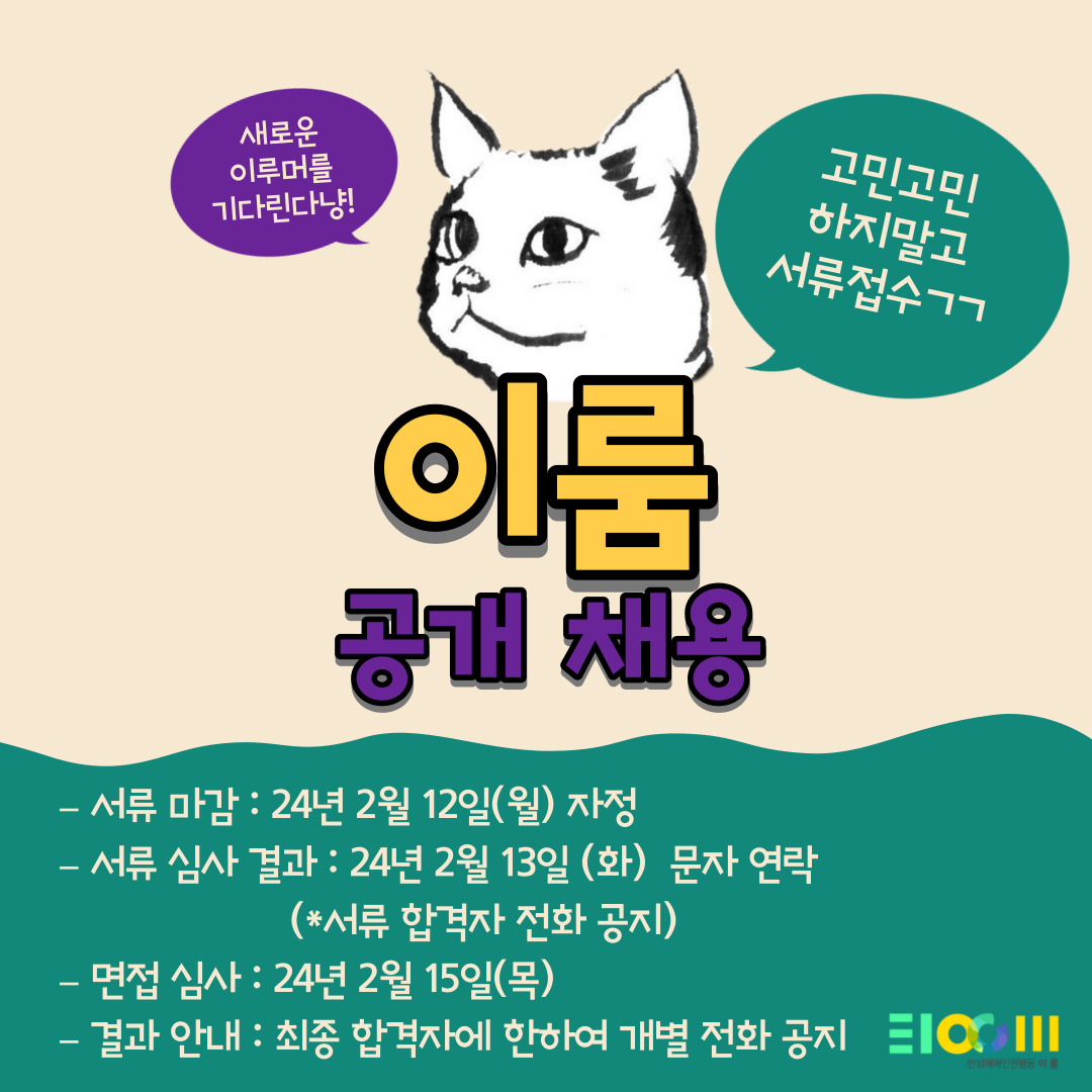 – 서류 접수 : 2024년 2월 12일 (월) 24시까지 이메일 (eloom2004@naver.com) 접수